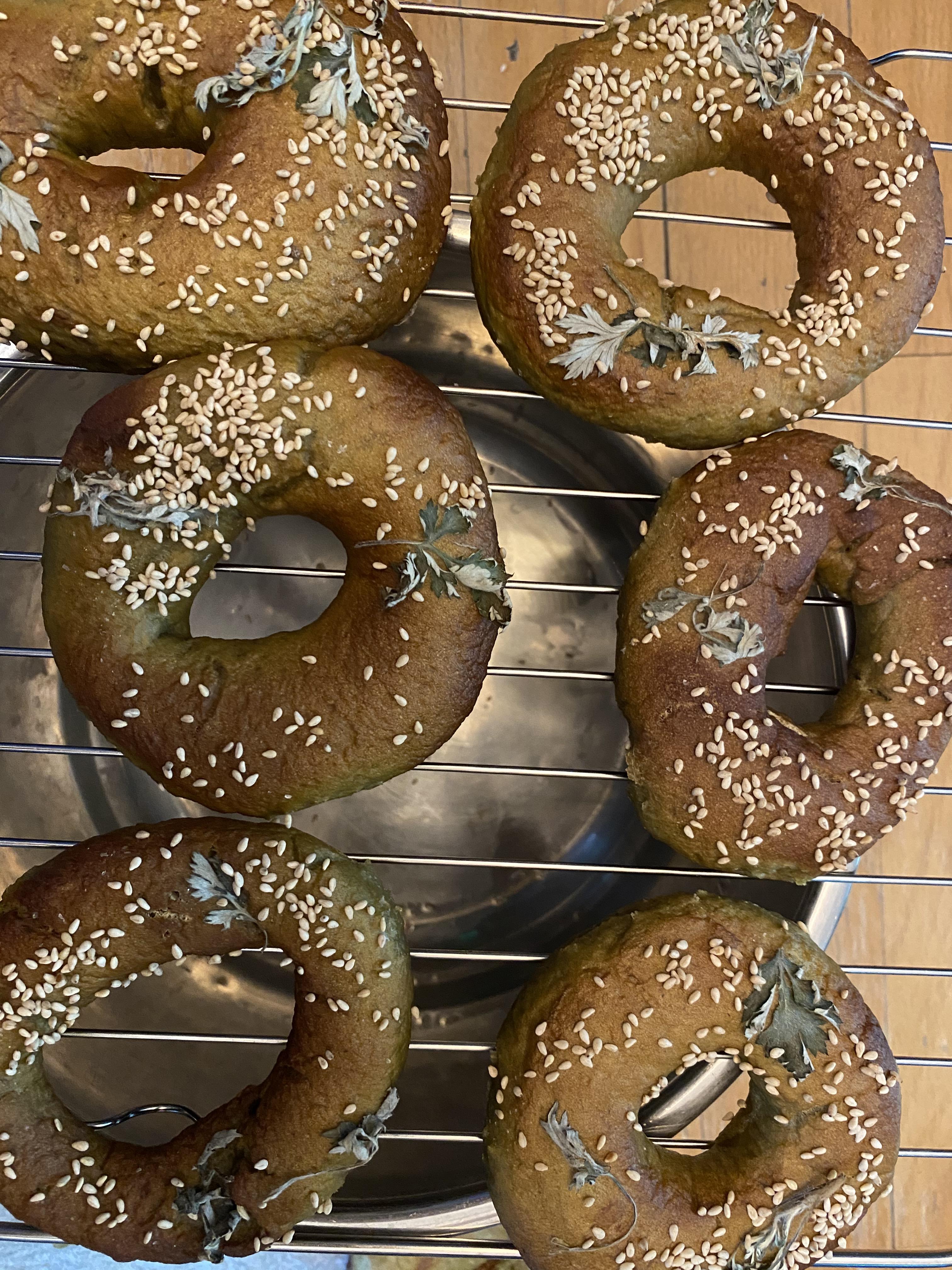 쑥 베이글을 만들어 보았어요.